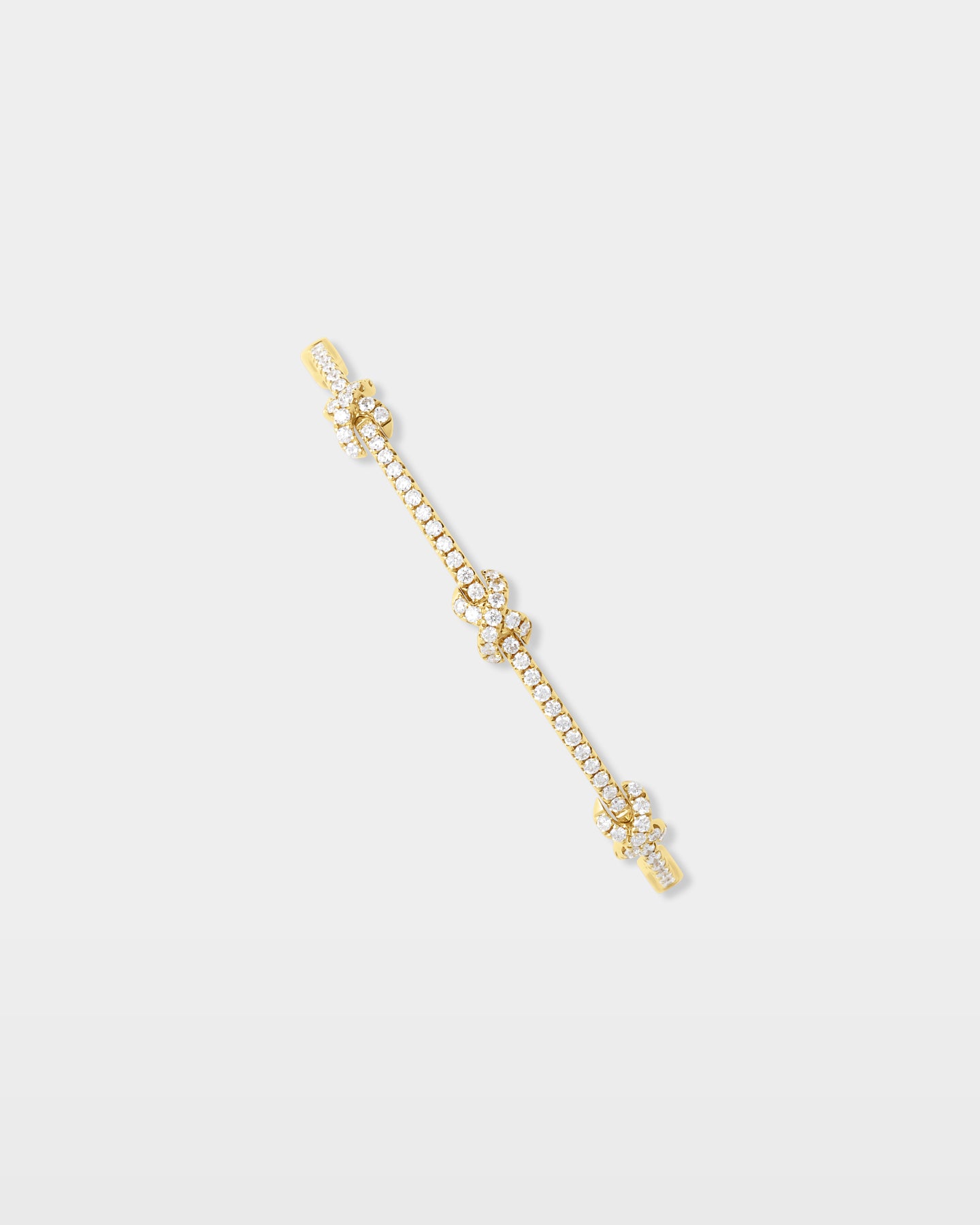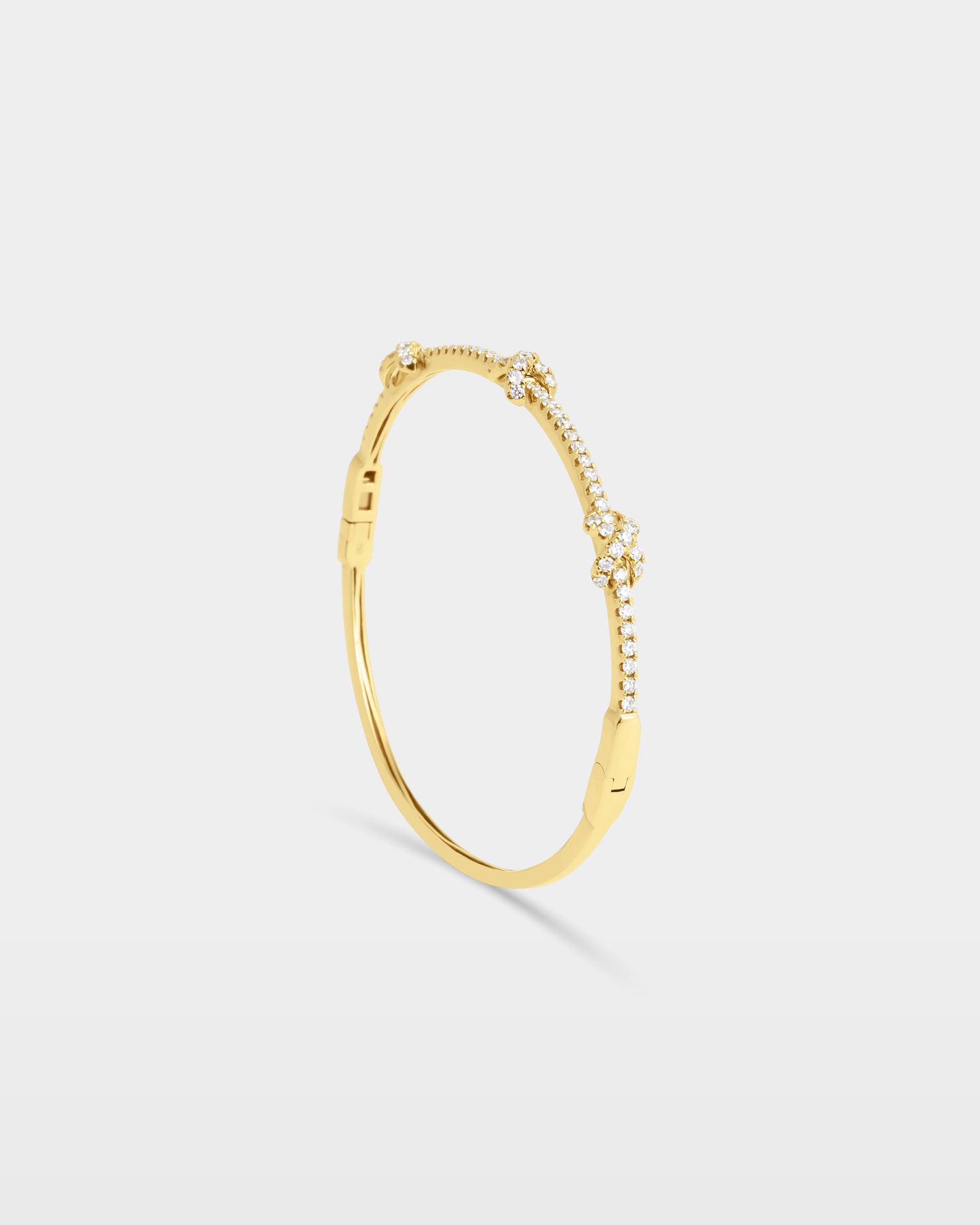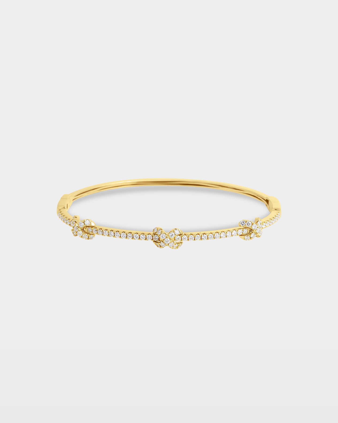 Three infinity stations anchor this pavé bangle, giving it a unique rhythm and a little extra dimension on the wrist. Its' slim profile works beautifully when styled with gold rings, diamond studs or a gold pendant necklace. A timeless accent for anyone who wants something understated but still special.
