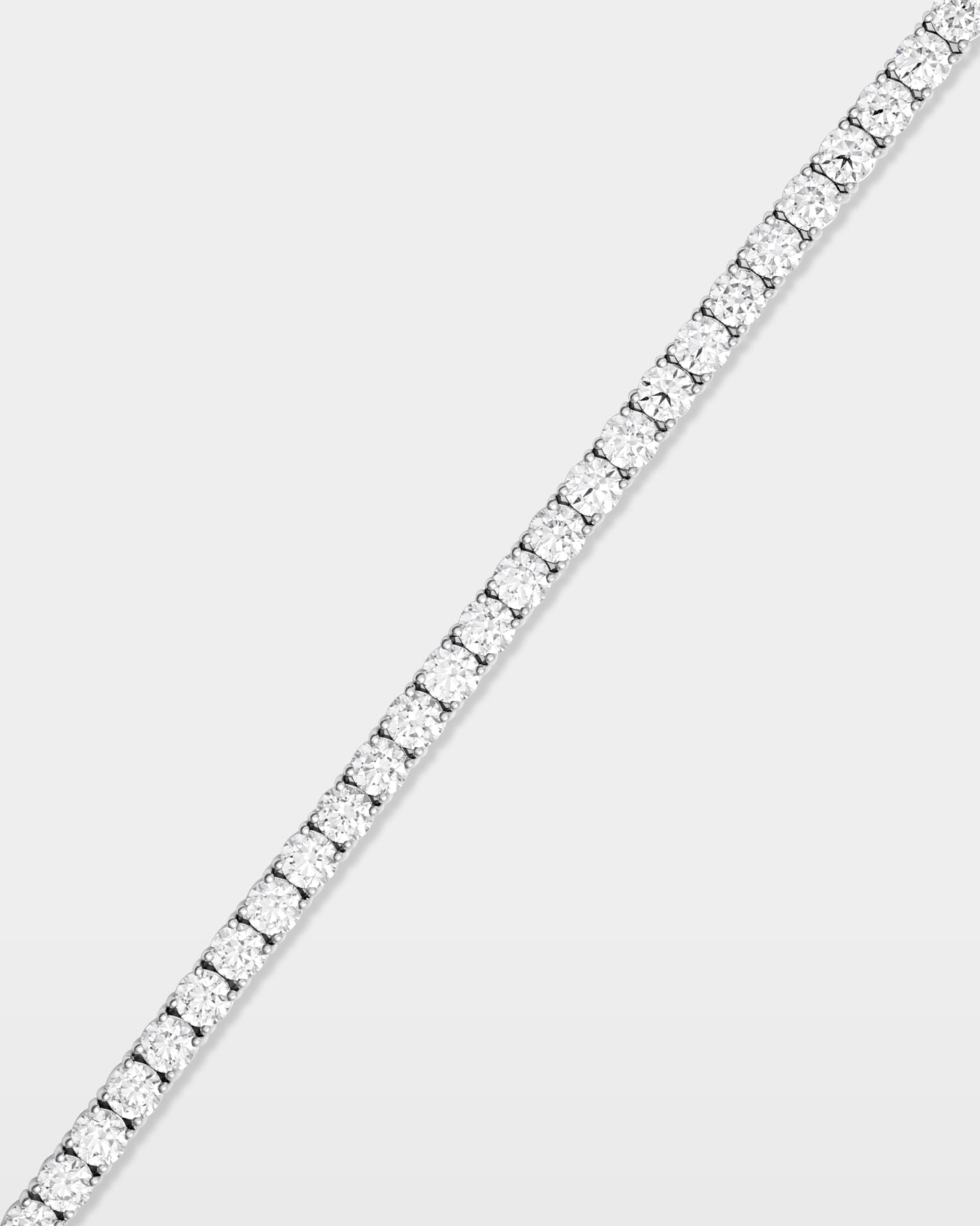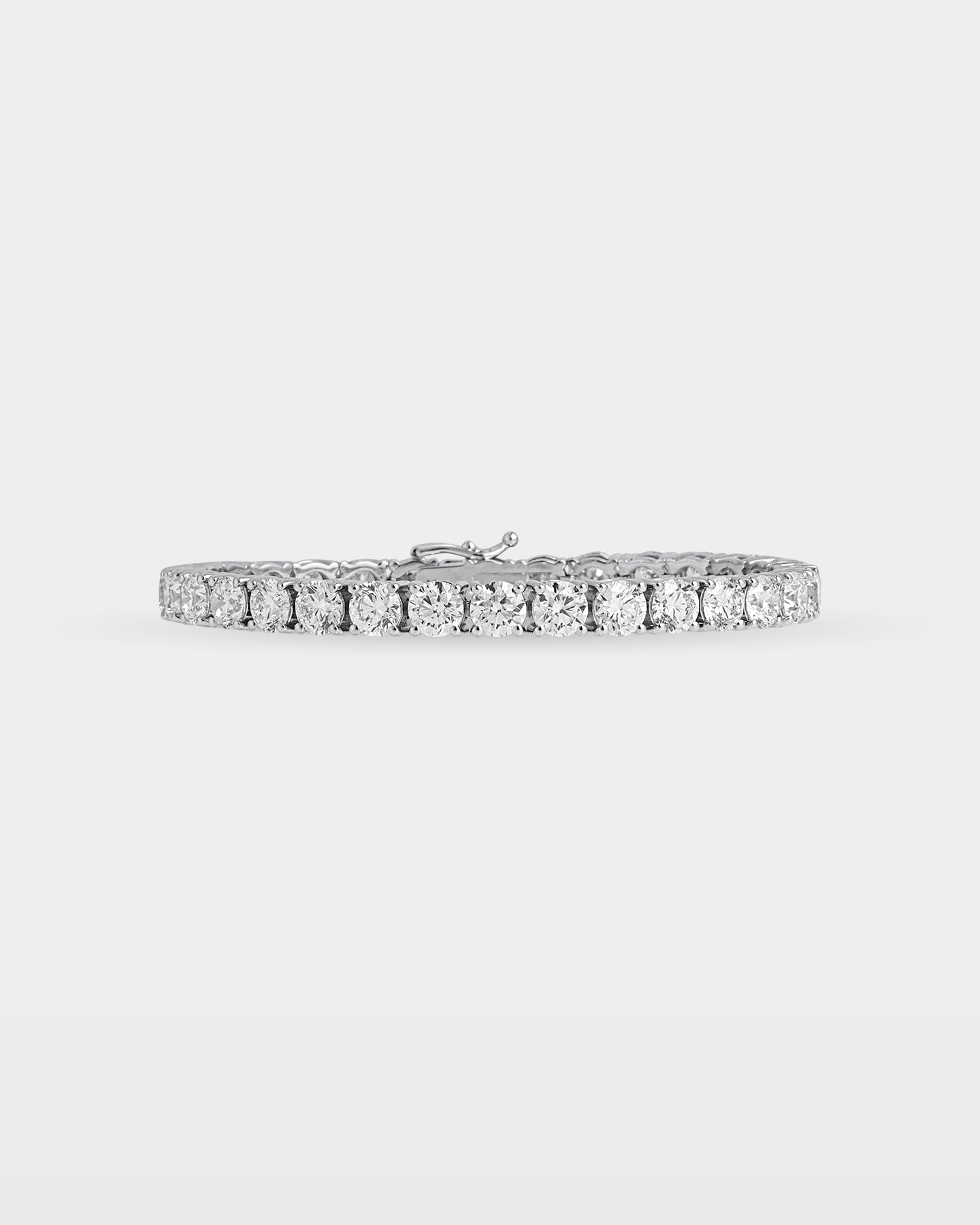 A classic tennis silhouette with over twenty carats of round diamonds gives this bracelet a refined radiance. The 14k white gold setting keeps the look understated enough for daytime and elegant enough for evening plans. It seamlessly pairs with diamond studs, a tennis necklace or a simple ring stack.