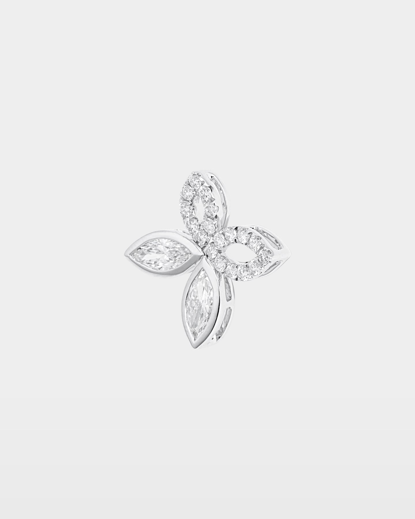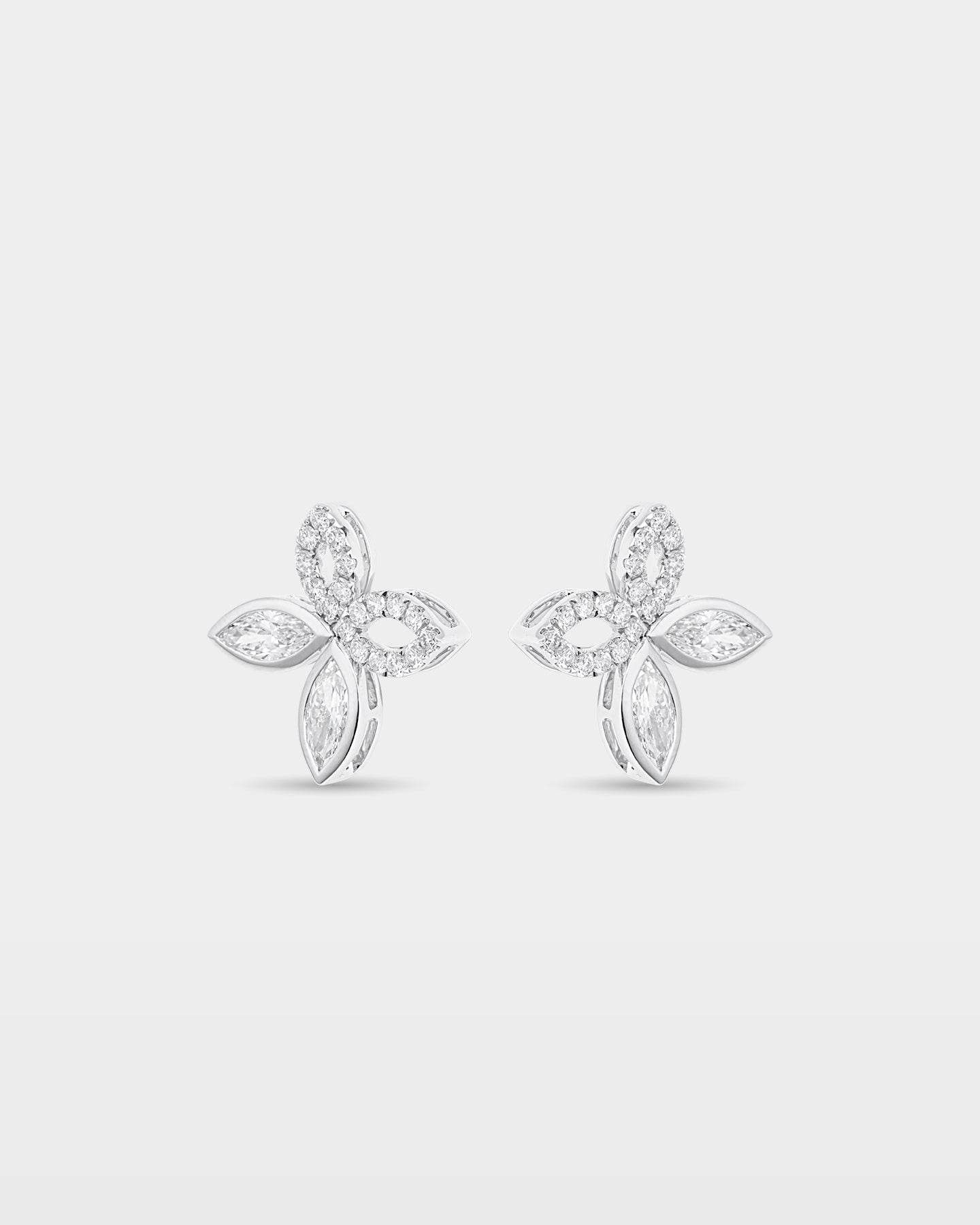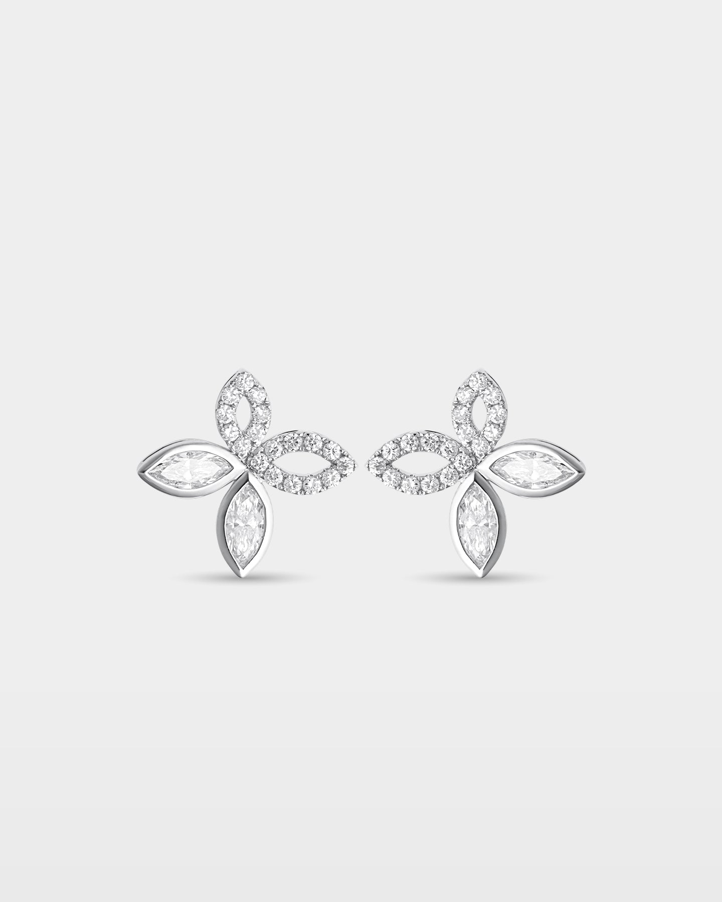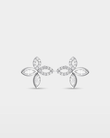 A modern take on floral jewelry, these white gold studs feel light, bright and easy to style. Two petals hold marquise diamonds while the others outline the shape with round stones, giving the pair a mix of structure and sparkle. Diamond studs that fit right in whether you are heading to work, grabbing drinks or dressing up a relaxed weekend outfit.