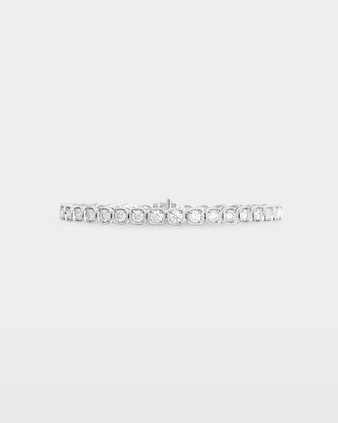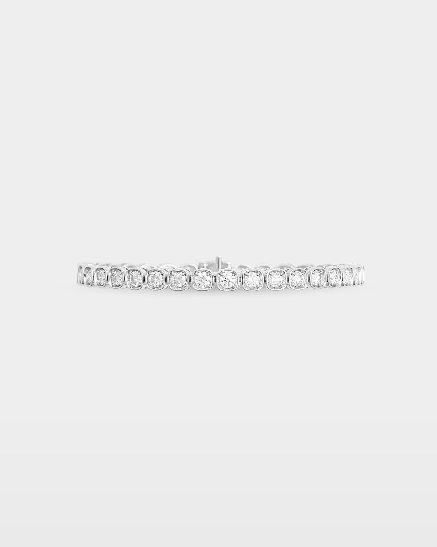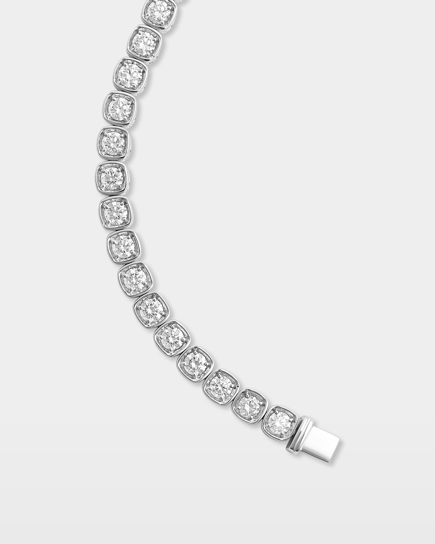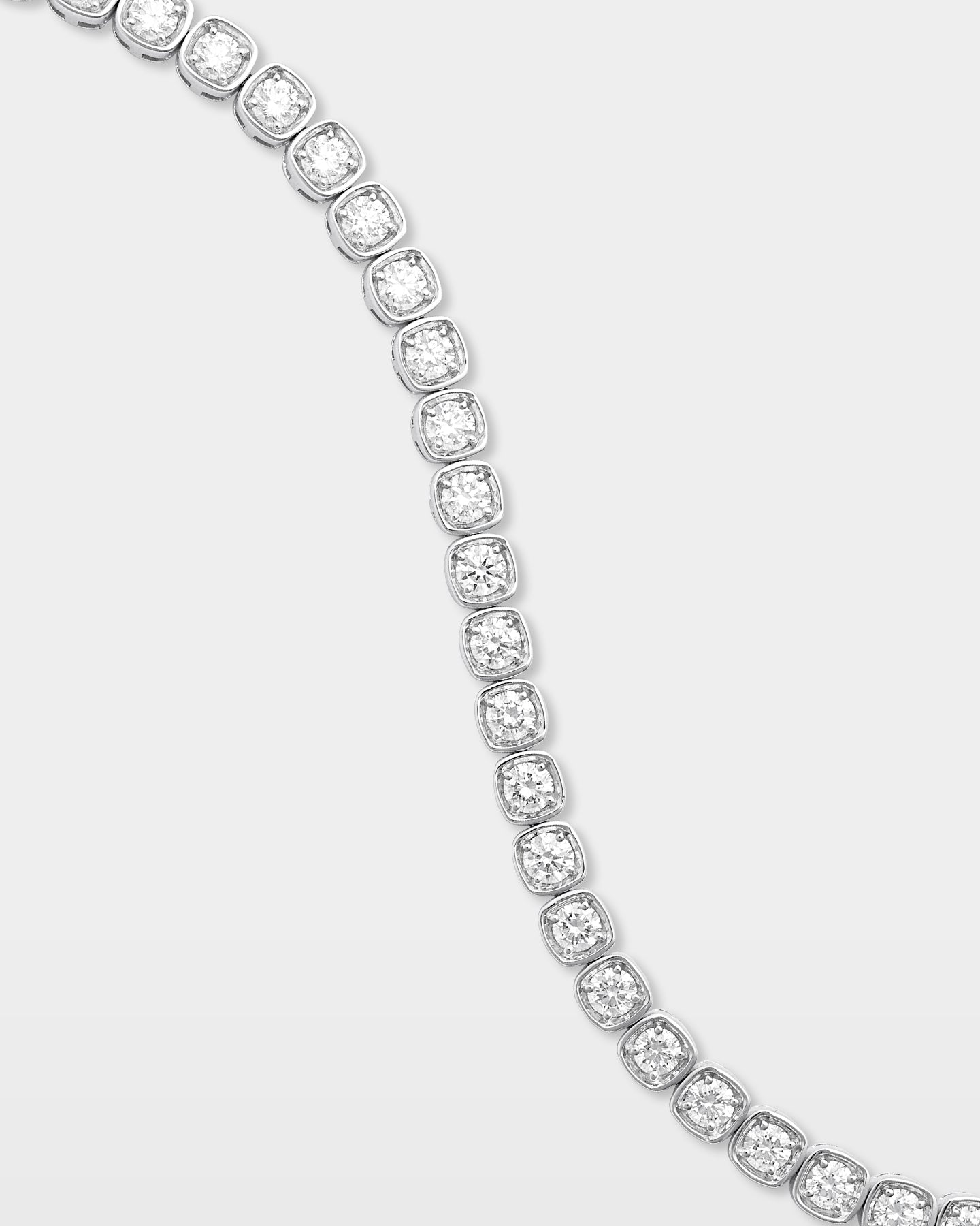 Cushion-shaped bezels wrap each diamond, giving the tennis bracelet a delicate profile. It’s easy to stack with chain necklaces, gemstone bracelets or statement rings. Light enough for daily wear, but polished enough for nights out with friends.