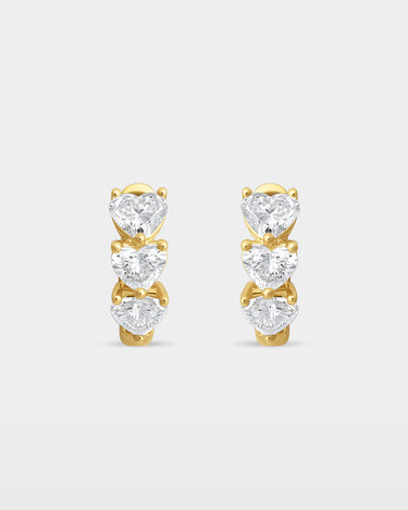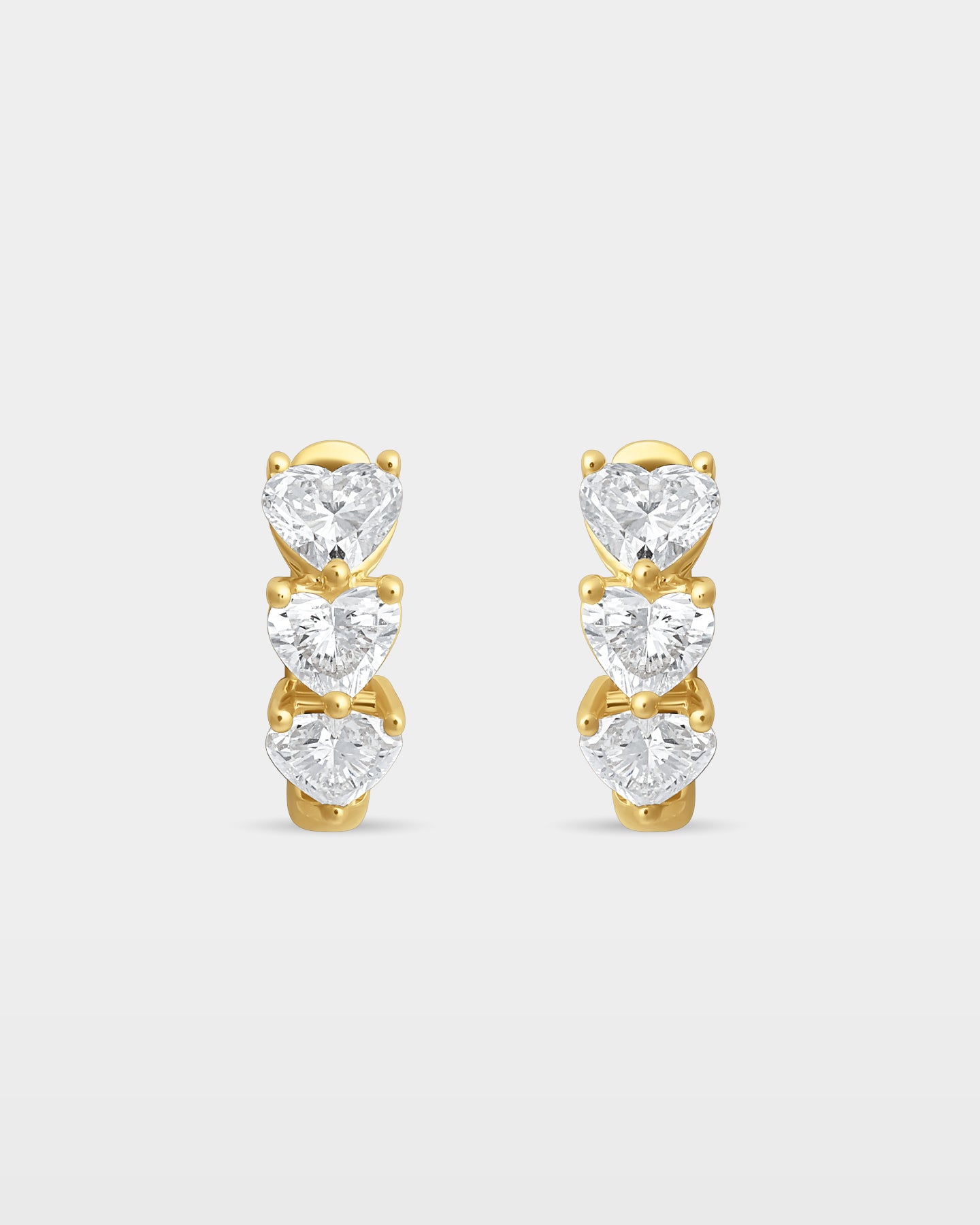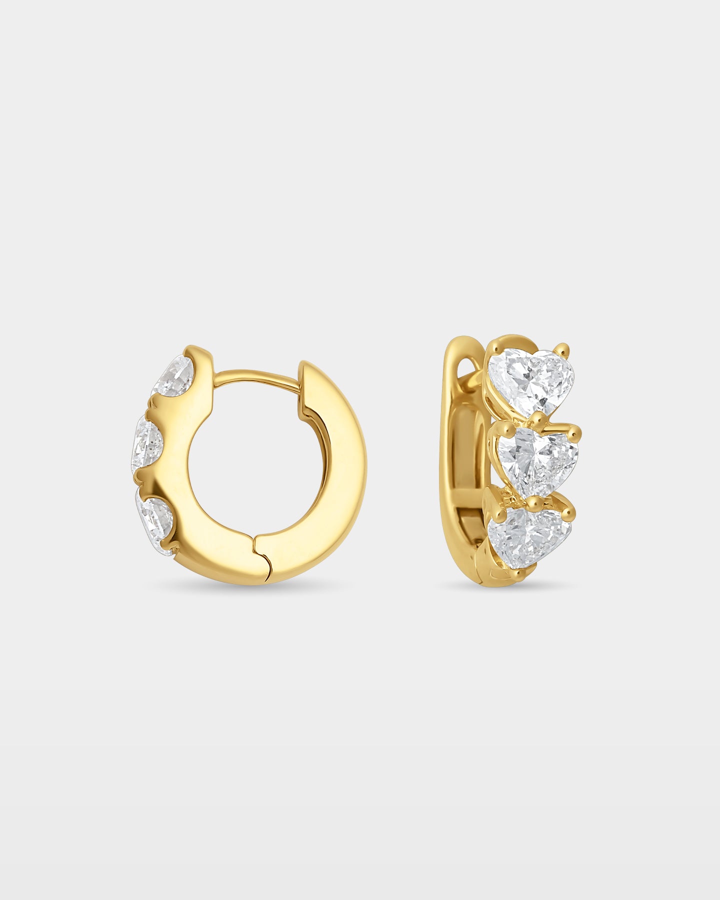 Three heart-cut diamonds give these huggies a playful but elevated feel that works just as well with a hoodie as it does with a night-out look. The yellow gold setting adds warmth you can layer with beaded bracelets, hoop earrings or a pendant chain. They bring enough shine to stand alone but also blend seamlessly into a full jewelry stack.