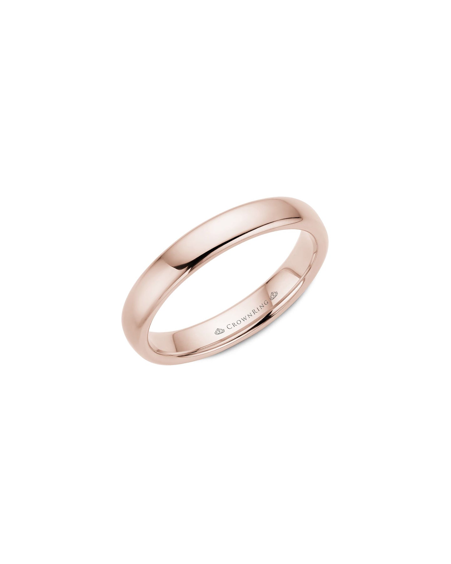 This 4mm gold wedding band features a dome profile and comfort fit with a polished shine. Crafted in 14k rose gold, it’s a timeless piece for the groom who values simplicity and elegance.