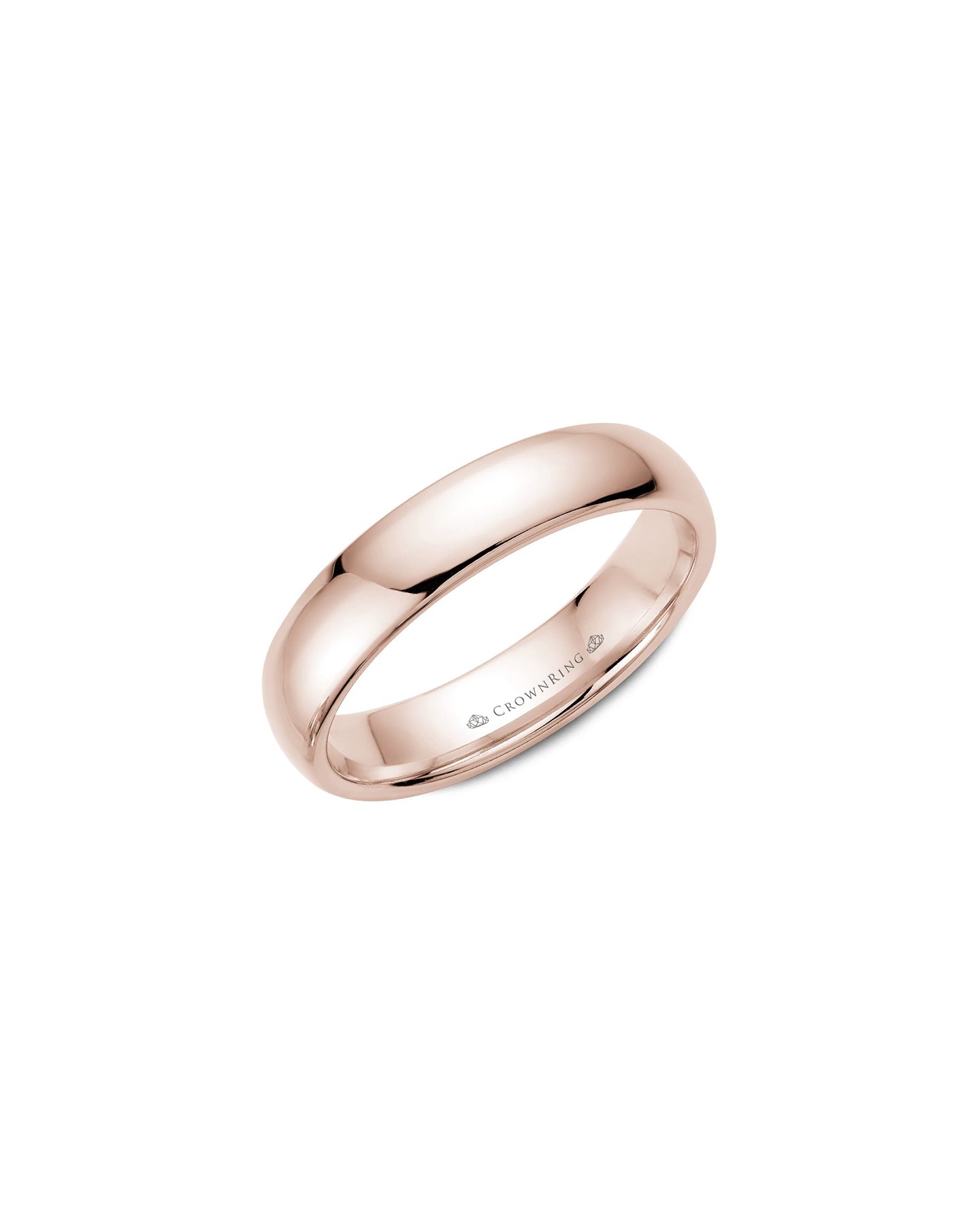 This 5mm gold wedding band features a dome profile and comfort fit with a polished shine. Crafted in 14k rose gold, it’s a timeless piece for the groom who values simplicity and elegance.