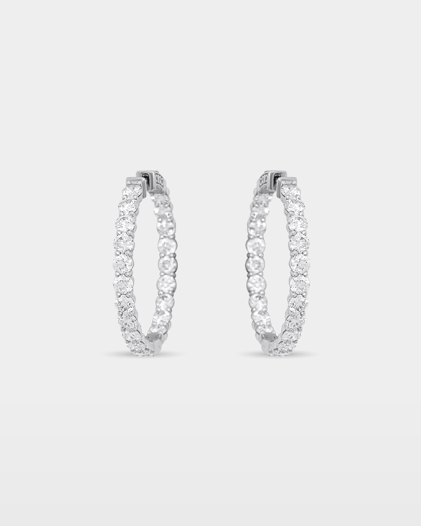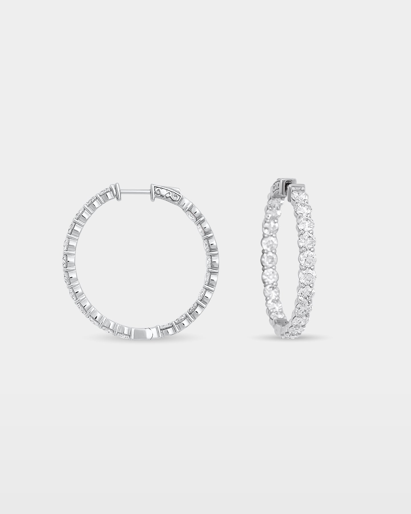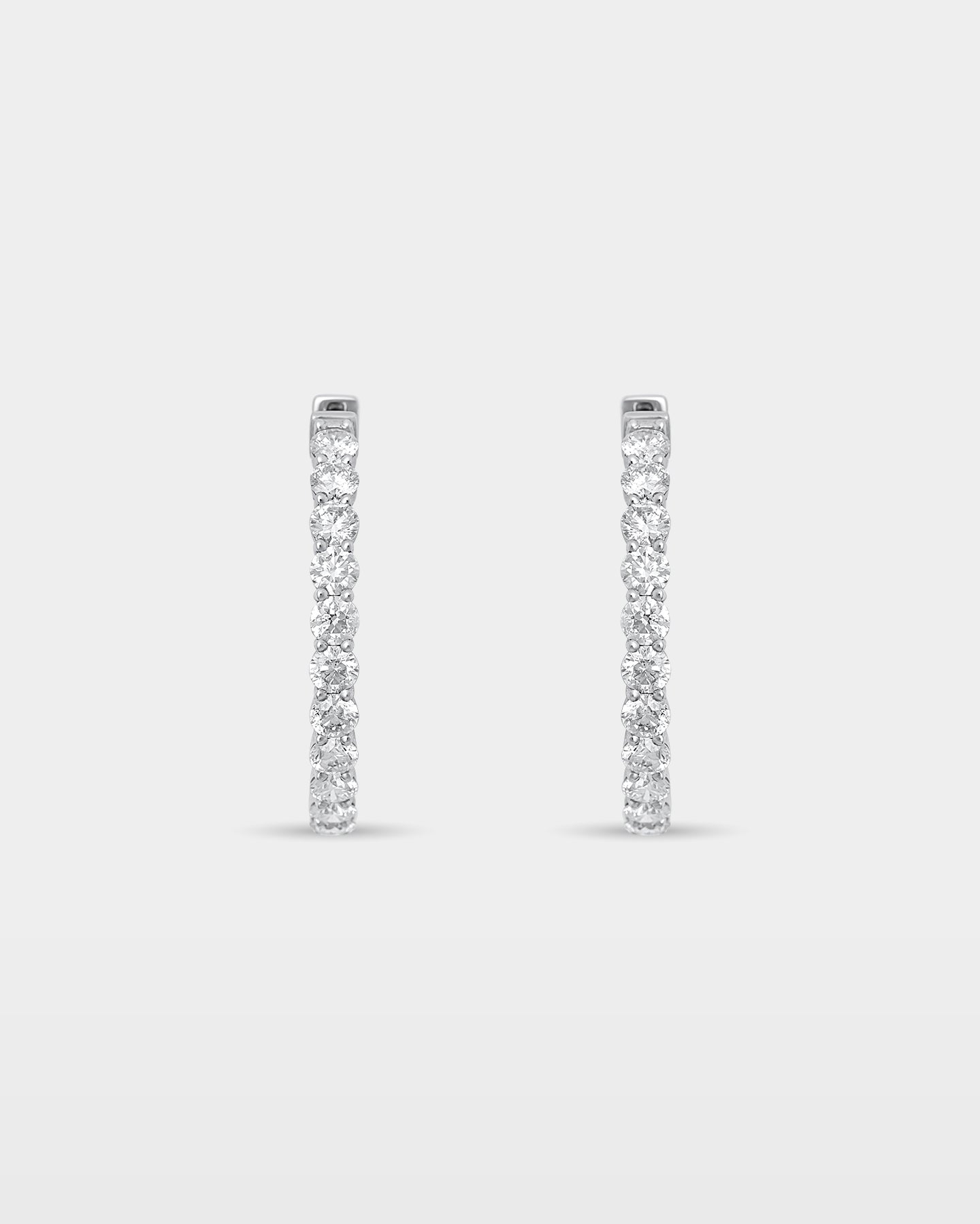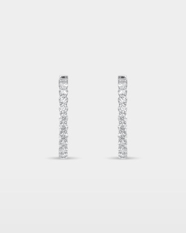 A statement in symmetry, these diamond hoops are designed to sparkle from within and without. Set in white gold with 15.00 carats of brilliance, they layer easily with statement rings or stand alone for everyday impact. Sleek enough for the office, elevated enough for nights out.