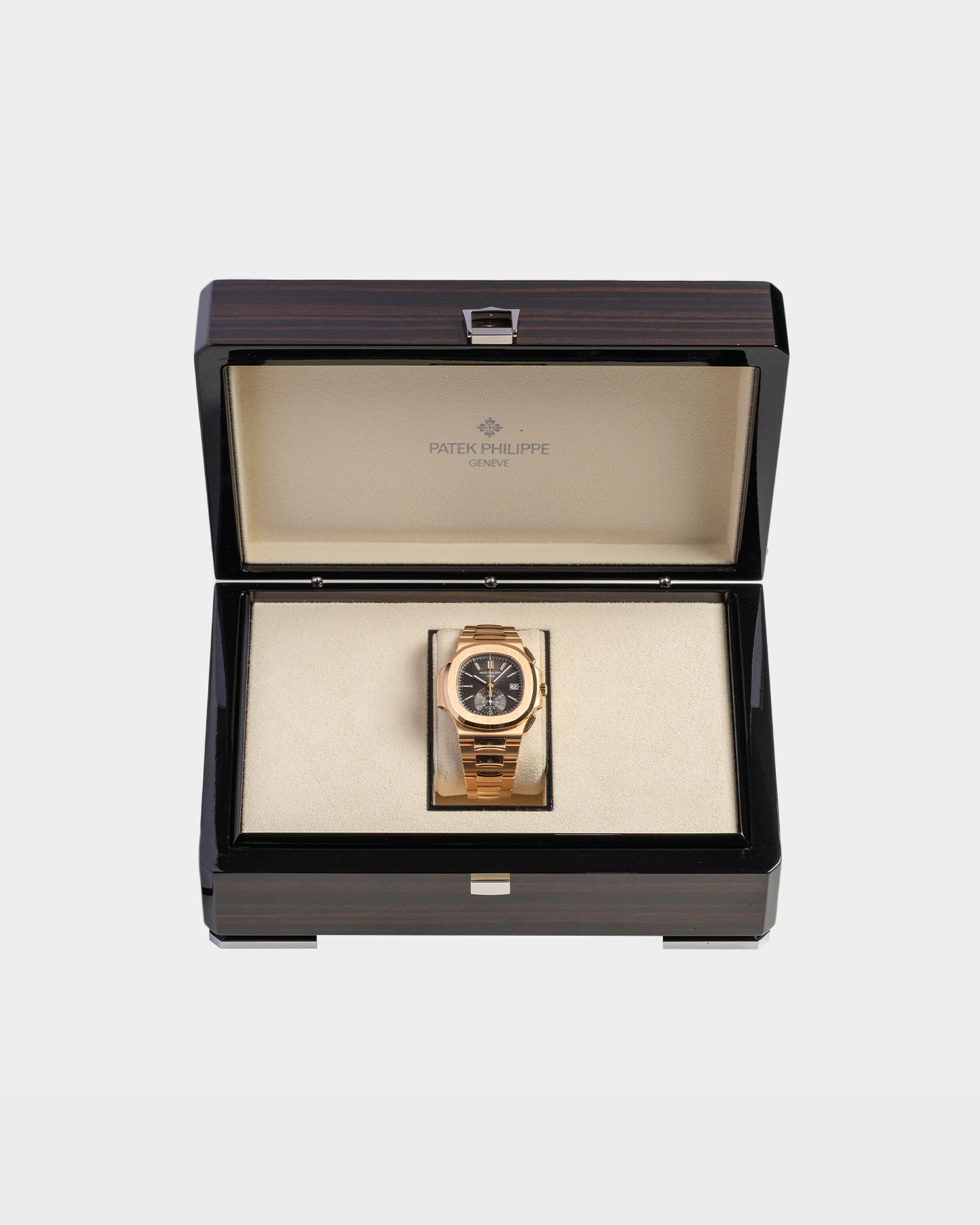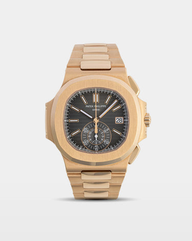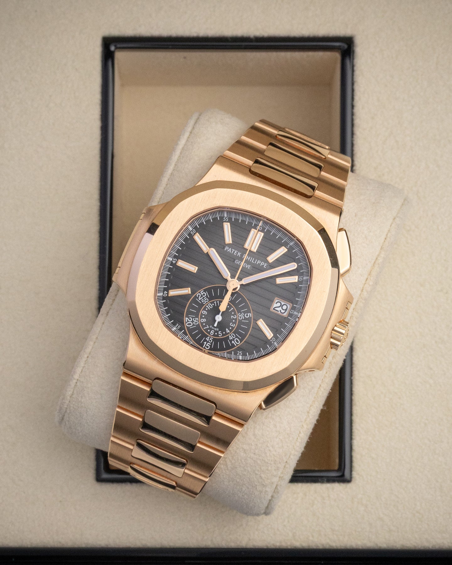 The Nautilus 5980/1R is what happens when a sport chronograph gets dressed in pure luxury. Its 40.5mm rose gold case and bracelet bring serious weight, balanced by the slate dial with that familiar embossed pattern. At 6 o’clock, a single counter handles both chronograph minutes and hours. Inside, the automatic caliber CH 28-520 C powers the piece with a flyback function and a 55-hour reserve. It’s a Patek Philippe watch that sits comfortably between daily wear and grail status.