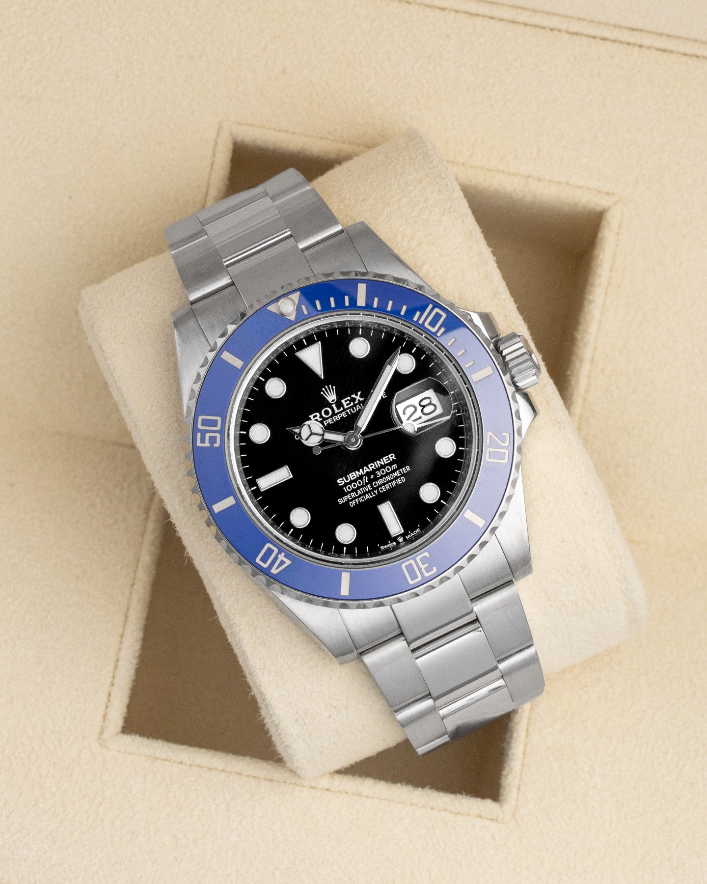 Known as the “Cookie Monster,” the Rolex Submariner Date 126619LB puts a luxury spin on one of the most iconic sport watches out there. A solid white gold case and bracelet elevate the Sub’s tool watch DNA, while the bright blue ceramic bezel adds a jolt of personality. The black dial is sharp and luminous, keeping the focus on legibility. The caliber 3235 handles timekeeping with trademark accuracy and a 70-hour reserve, making this Rolex watch as reliable as it is distinctive.