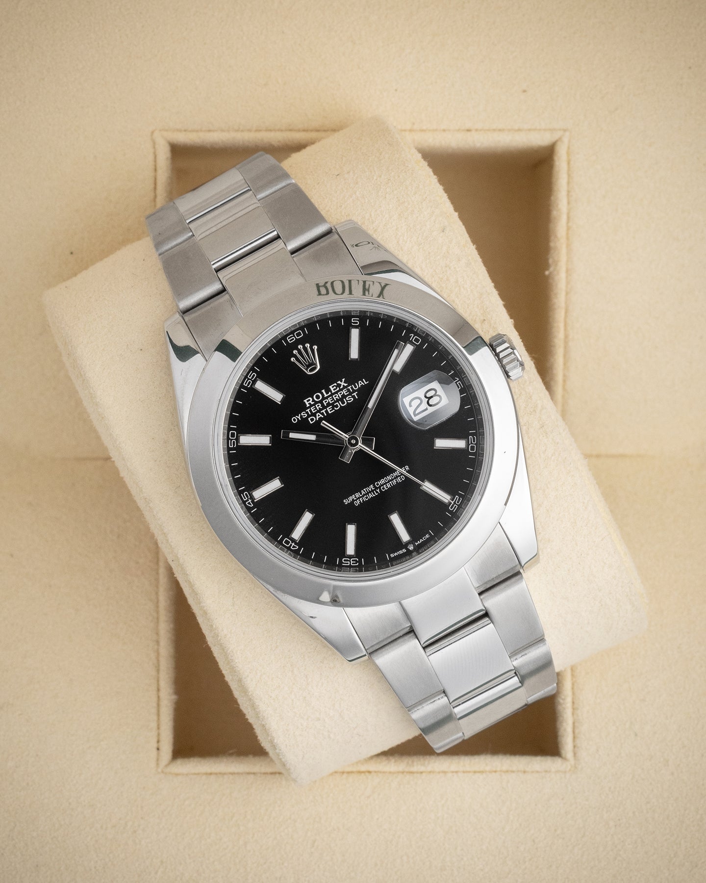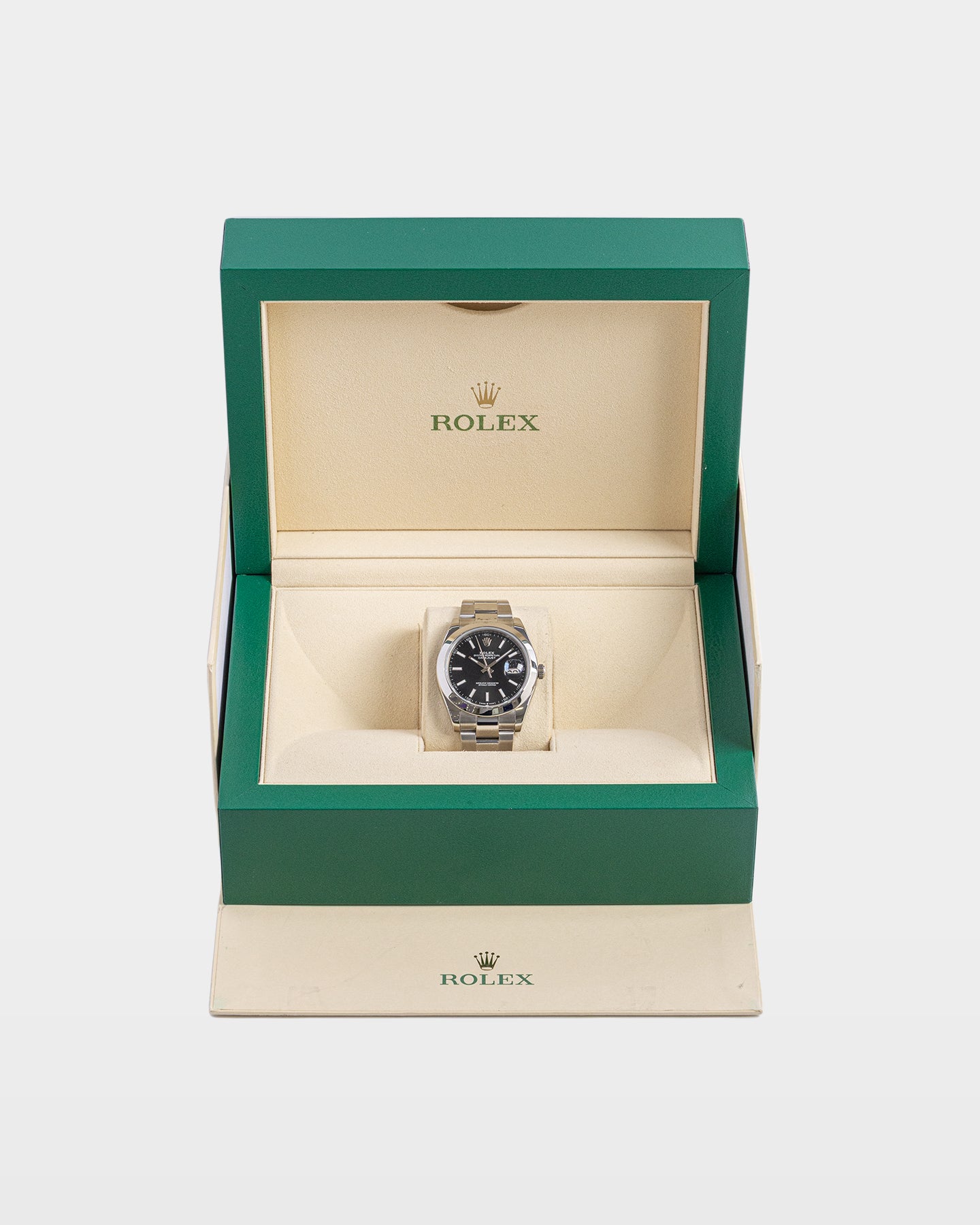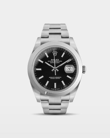 The Datejust 126300 is the definition of effortless versatility. The 41mm steel case and Oyster bracelet give it a solid, balanced presence on the wrist, while the smooth bezel and black dial keep the design clean. Luminous markers and a date window add function without overcomplicating the layout. Powered by the Caliber 3235, this Rolex watch delivers accuracy, reliability, and 70 hours of reserve. It’s a dress watch built to outlast trends.