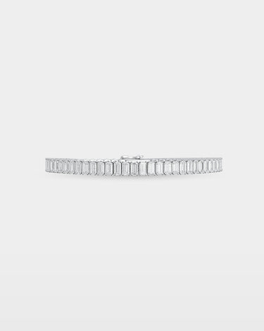 Clean edges and bright baguette diamonds make this bracelet an easy upgrade to your everyday rotation. It layers naturally with cuff bracelets or a simple diamond necklace for a balanced look. Whether you're heading into a meeting or out to dinner, it keeps your style sharp.