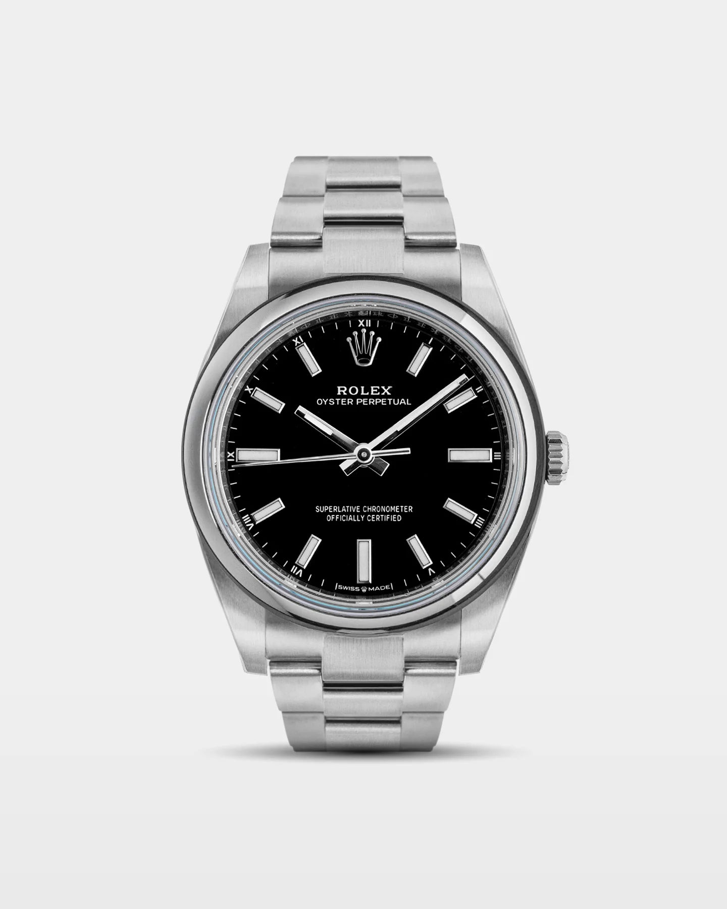 The Oyster Perpetual 124200 might be one of the most underrated pieces in the Rolex catalog. It’s simple, but that’s the point. A 34mm steel case with a smooth bezel keeps it clean, while the black dial and luminous baton markers add just enough contrast. Inside, the caliber 2232 gets the job done with a 55-hour power reserve and chronometer certification. Paired with the Oyster bracelet, it’s the kind of Rolex watch that quietly outlasts trends.