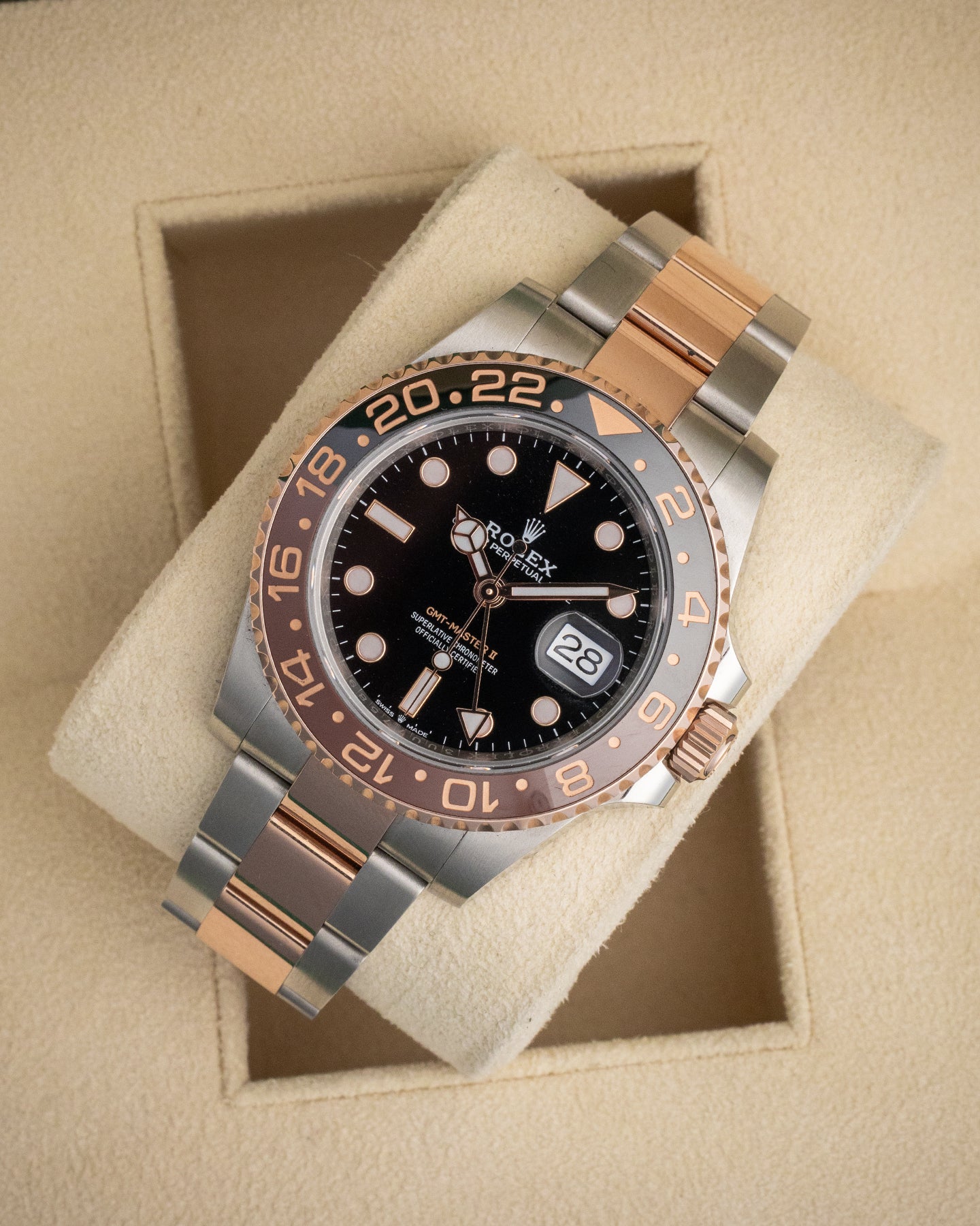Collectors call it the “Root Beer” and it’s easy to see why. The GMT-Master II 126711CHNR mixes steel and rose gold with a black and brown ceramic bezel that stands out without being loud. The 40mm Oyster case houses the automatic Caliber 3285, offering dual-time tracking and a healthy 70-hour power reserve. Luminous markers light up the glossy black dial for legibility anywhere. This Rolex watch balances classic design with just the right amount of flair.