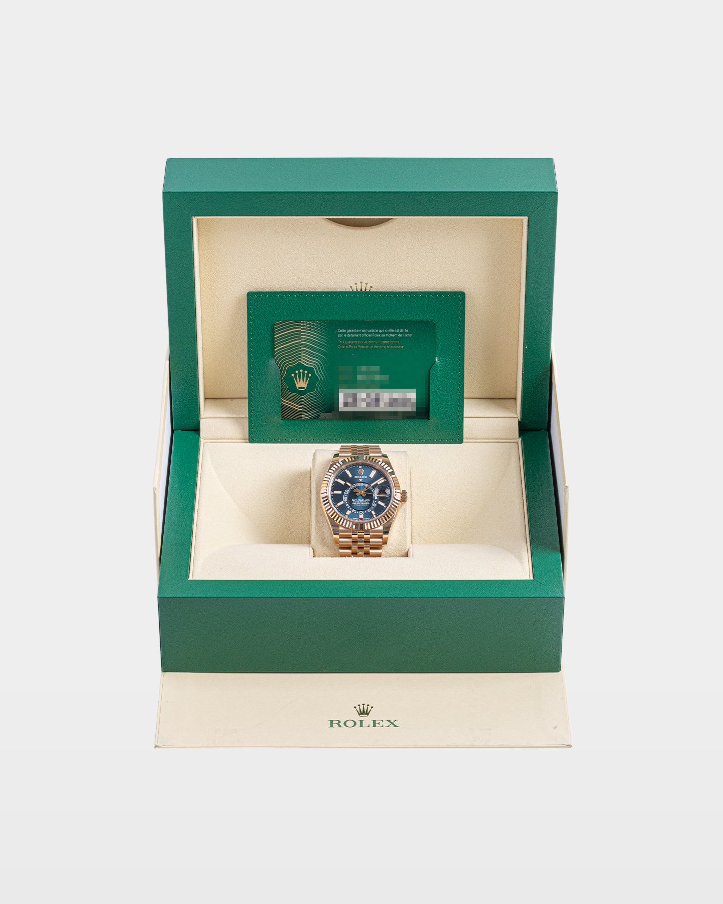 The Sky-Dweller 336935 is what happens when precision meets elegance. The 42mm Everose gold case feels substantial while the blue-green dial keeps things contemporary. The fluted bezel is part of Rolex’s clever Ring Command system that controls the dual time zone and annual calendar functions. Powered by the Caliber 9002, this Rolex watch delivers 72 hours of reserve and everyday reliability. It’s one of those dress watches that rewards you the longer you wear it.