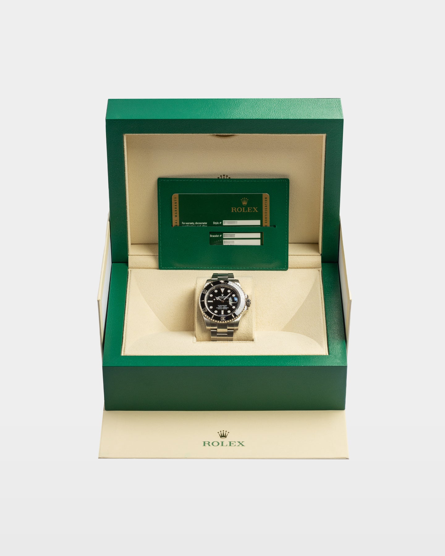 The Rolex Submariner 116610LN is a sport watch that strikes a perfect balance between form and function. Crafted from Oystersteel, its 40mm case is fitted with a black Cerachrom bezel and a black dial with luminous hour markers for low-light readability. The unidirectional bezel offers precise timing capabilities, while the Caliber 3135 automatic movement delivers a 48-hour power reserve. This Rolex watch continues to define the modern dive watch—understated, precise, and built to last.